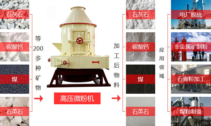 【應(yīng)用領(lǐng)域】主要適用于中、低硬度,莫氏硬度<6級的非易燃易爆的脆性物料